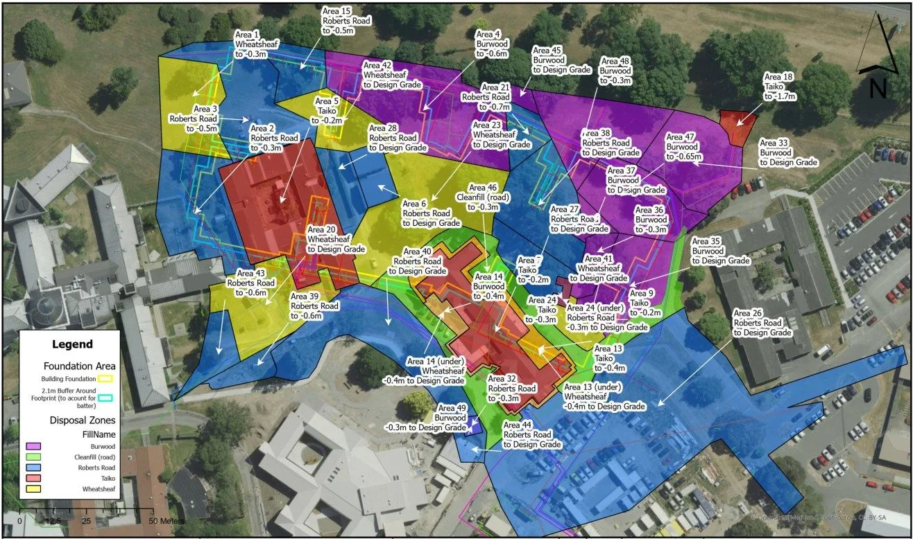 On this project we championed the use of GIS systems, and GPS-enabled diggers to provide massive value. Besides the operational advantage, this also made it easy to communicate key information about soil disposal at the site to our client and other stakeholders.